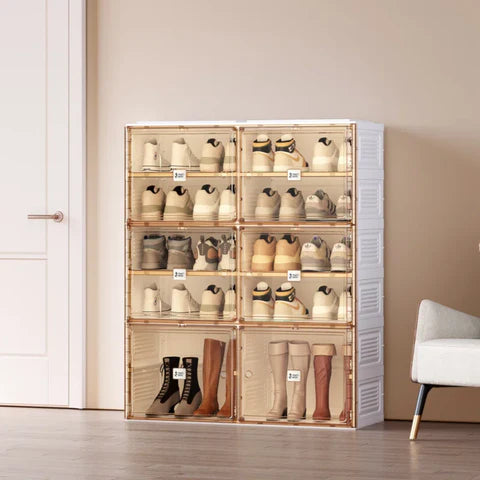 Whether you own five pairs or fifty, the expandable design allows you to build vertically or horizontally to fit your space. The durable panels lock securely, giving you a stable, customizable shoe storage system that adapts as your collection grows.